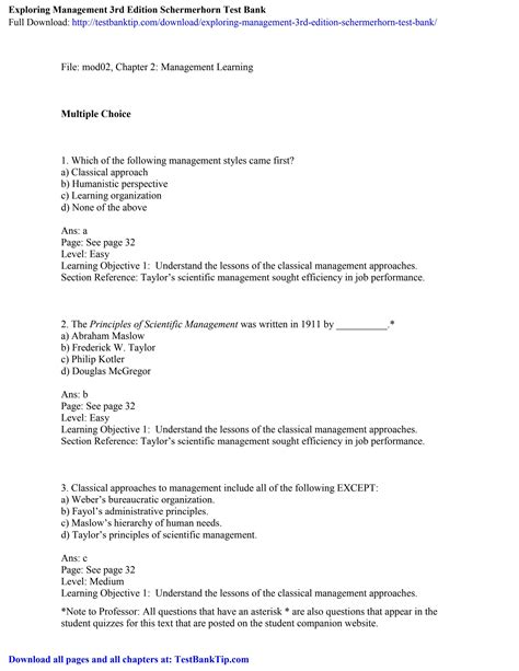 Download Exploring Management 3rd Edition Test Answers Hardcover